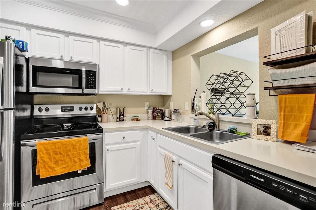 Credit must be 650+ Looking for that perfect rental? This top floor 1BR/1.5 BA condo offers a fantastic location second to none. Brand new energy saving AC just installed. This spacious unit features a remodeled kitchen, new SS appliances (including DW and garbage disposal), pantry, central A/C, guest bathroom and an amazing pool view from the large living room windows. The private screened in lanai has access from the living room and bedroom. The master features a large walk-in closet, big windows with natural light and direct patio access. This condo also includes a private storage locker, assigned parking, elevator, poolside community room, lush gardens with walkways and even a sauna. Water and trash also included. Don’t miss this one. Credit must be 650+ No Pets Allowed (RLNE8136837)